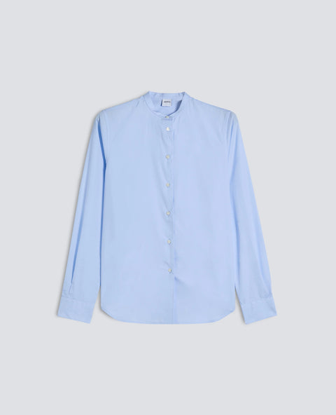 Camicia dal taglio classico realizzata in morbido popeline di cotone. Il modello presenta una pratica chiusura frontale con bottoni, maniche lunghe con polsini e bottoni, un elegante colletto alla coreana, orlo arrotondato e un raffinato rinforzo posteriore. Vestibilità aderente.