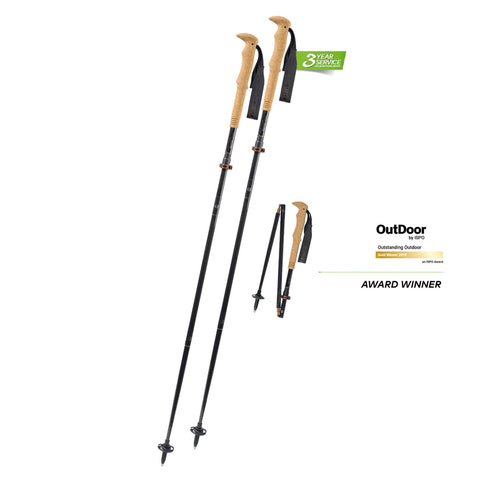 Il nostro leggero bastoncino da trekking in carbonio è dotato di un'impugnatura in sughero particolarmente morbida e leggera e si apre completamente da solo. Unico e solo da Komperdell . Tieni il palo per l'impugnatura e rilascia i segmenti e sei pronto per partire.