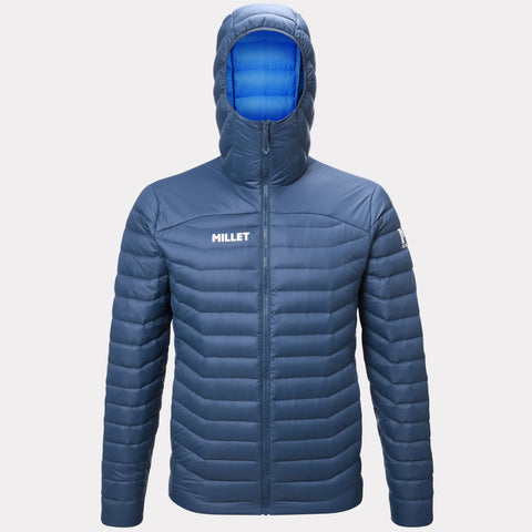 The temperature is dropping. We put on our compressible EVOLE LIGHT 700 down jacket under our protective outer layer. Its hybrid construction combines hydrophobic duck down insulation with 100% recycled synthetic insulation to optimise the balance of warmth and breathability. We can continue moving ahead in comfort. It is lightweight with seamless shoulders, and we almost forget we are wearing our mountain down jacket.